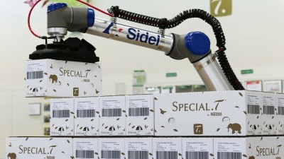 Ostatnio Nestlé zainstalowało dwie jednostki CoboAccess Pal, przemysłowego, bezpiecznego i łatwego w użyciu kobotycznego rozwiązania do paletyzacji firmy Sidel na terenie firmy w szwajcarskim Orbe. Automatyzując paletyzację kapsułek Special.T, Nestlé uzyska wyższą jakość, jednocześnie oferując swoim pracownikom łatwość obsługi. Połączenie komputera PC i sterownika PLC umożliwia łatwiej kontrolowane trajektorie w celu lepszego pobierania i umieszczania kobota. W przeszłości zakład, wyposażony w linie o niskiej i średniej prędkości, przeprowadzał ręczną paletyzację. Ponieważ oczekiwano wyższej produktywności, chciano zastosować kobiotyczne paletyzowanie, aby uniknąć wykonywania powtarzających się nieergonomicznych zadań. Pudełka z kapsułkami do herbaty są bardzo lekkie, długie i wąskie. Właśnie dlatego dokładne umieszczanie skrzynek na palecie i tworzenie ciasnych warstw są głównymi wymaganiami gwarantującymi stabilność palety, unikając przemieszczania się produktów przez cały łańcuch dostaw, z zabezpieczeniem ich pełnej integralności i ostatecznie trafiając w ręce konsumentów bez żadnych uszkodzeń. Konieczne było też utrzymanie tego samego poziomu bezpieczeństwa po przejściu z pracy fizycznej na technologię kobotyczną oraz instalacja intuicyjnej nawigacji w interfejsie HMI. W Orbe zainstalowano dwa kobotyczne paletyzatory wzdłuż dwóch kompaktowych pakowarek bocznych Cermex SW21. Co więcej, interfejs HMI CoboAccess_Pal doskonale nadaje się do spełnienia wymagań klienta dotyczących przyjaznego dla użytkownika rozwiązania. W oparciu o intuicyjną nawigację za pomocą tabletu, HMI ułatwia codzienne zadania operatorom, ponieważ mogą oni uzyskać dostęp do SOP i arkuszy obsługi, aby łatwiej i szybciej rozwiązywać problemy i analizować ich przyczyny. Dzięki rozwiązaniu Fanuc CR-15iA, system pozwala na większą ładowność podczas pracy z sześcioma cyklami na minutę.