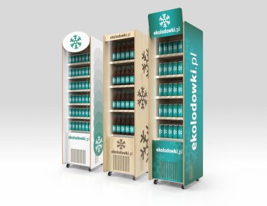 Lodówki niekoniecznie kojarzą nam się z ekologią, ponieważ w większości przypadków zużywają dużo prądu, zbudowane są z materiałów niepodlegających recyklingowi, a aplikowanie na nich elementów brandingowych wymaga użycia skomplikowanych technik. Okazuje się jednak, że technologia często wchodzi w sukurs naszym potrzebom. Cechą wyróżniającą ekolodówki jest niska energochłonność produkcji oraz odnawialne źródło surowca jakim jest drewno. Ten naturalny materiał można w łatwy sposób poddać renowacji, a po zużyciu biomasę utylizować. Dzięki dwóm trybom pracy – normalnemu i ekonomicznemu można kontrolować poziom zużycia energii. Czyni to ekolodówki jednym z najtańszych rozwiązań na rynku. Materiał, z którego wykonana jest obudowa ma także wpływ na łatwość naniesienia dekoracji. Zadrukowanie ich powierzchni jest tak łatwe jak druk na POSach. Zresztą mogą one pełnić w sklepach ich funkcję, prezentując napoje czy produkty wymagające chłodzenia. Warto również pamiętać, że mimo iż ekologia wzbudza w nas skojarzenia związane z naturalnymi acz przestarzałymi rozwiązaniami, w rzeczywistości najnowsze eko-trendy są bardzo nowoczesne i zaawansowane technologicznie. Lodówki wyposażone są w koła jezdne, oświetlenie ledowe, automatyczne odszranianie oraz elektroniczny regulator temperatury z wyświetlaczem. Schładzają produkty w zakresie od 4,0 do